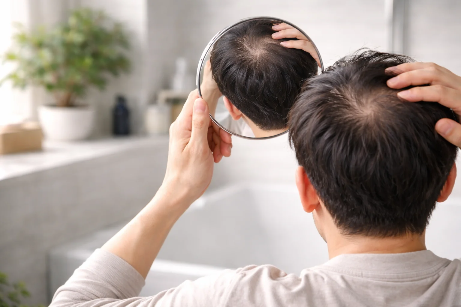 実は、つむじハゲには明確なチェックポイントがあります。頭皮の色、髪の密度、毛髪の太さなど、いくつかの項目を確認するだけで、セルフチェックが可能です。この記事では、写真を使った具体的な見分け方から、対策まで詳しく解説していきます。